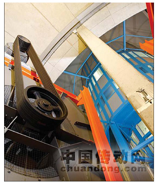 由12個200kW Unidrive SP獨立機柜型變頻器控制最大 2.4MW風機,而另外的4個110kW Unidrive SP驅動器提供通風功能,控制塔內氣溫。所有變頻器都配有SM-applications插卡應用模塊,并通過艾默生CT公司的高速CTNet網絡與觸摸屏通信。