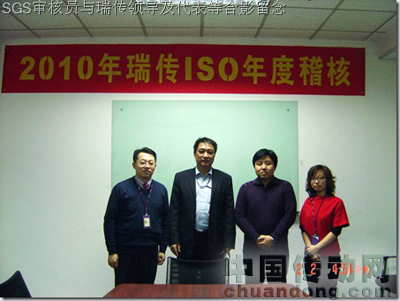 2010年2月2日,SGS質(zhì)量認證公司對北京瑞傳信通科技有限公司質(zhì)量體系運行情況進行了監(jiān)督審核。本次審核,采取抽查式取樣,涉及到公司質(zhì)量體系的11個職能部門,并抽取了公司質(zhì)量體系運行過程中的見證資料。審核過程中,審核組對瑞傳公司質(zhì)量體系運行的適宜性、有效性給予了肯定,并提出了有價值的建議;對存在的個別問題進行了詳細說明,同時探討了其對質(zhì)量體系有效運行的影響;對公司積極探索將國內(nèi)外技術(shù)規(guī)范和ISO9001質(zhì)量管理體系標準融合的工作給予高度評價,針對審核工作中發(fā)現(xiàn)的問題和存在的不足,以及ISO2008版新標準向各部門也提出了整改建議,為完善公司質(zhì)量管理體系的運行機制和質(zhì)量管理工作有效性的提升進行了頗具價值的探索。 以此次審核為契機,公司各相關(guān)部門和員工強化了對質(zhì)量管理工作的重視程度,并為公司順利推行SGS ISO9001:2008全新質(zhì)量管理體系奠定了基礎(chǔ)。