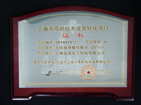 上海兆富通信技術(shù)有限公司研發(fā)的無(wú)線組網(wǎng)數(shù)傳模塊向上海市科委申請(qǐng)并立項(xiàng)為“上海市高新技術(shù)成果轉(zhuǎn)化項(xiàng)目”,其技術(shù)的先進(jìn)性和科技含量,得到了市科委相關(guān)專家的認(rèn)可和高度評(píng)價(jià),并得到了市科委的相關(guān)支撐。