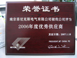 南京菲尼克斯被評為梅特勒-托利多2006年度優(yōu)秀供應(yīng)商
