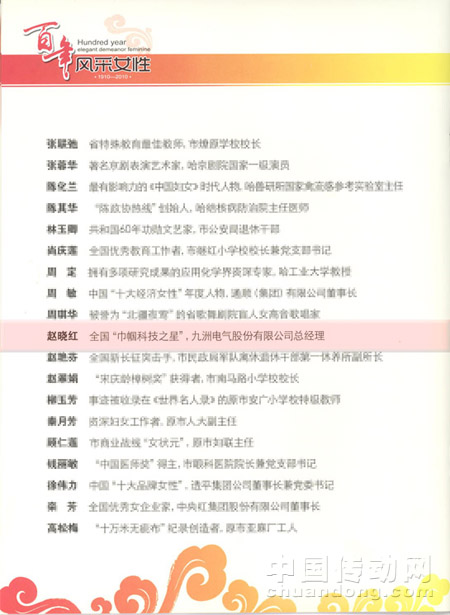 近日,為紀念“三八”國際勞動婦女節(jié)100周年,弘揚新時代女性自尊、自信、自立、自強的巾幗風采和頑強拼搏的精神面貌,市婦聯(lián)組織開展了哈爾濱市“百年風采女性”評選活動,哈爾濱九洲電氣股份有限公司總經(jīng)理趙曉紅在眾多候選人中脫穎而出,獲得了“百年風采女性”的榮譽稱號。