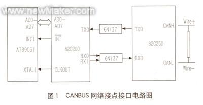 共模干擾的抑制措施主要有如下3種:變壓器隔離、光電隔離和浮地屏蔽。變壓器隔離就是利用變壓器將模擬信號(hào)電路與數(shù)字信號(hào)電路隔離開(kāi)來(lái)。光電隔離是利用光電耦合器來(lái)實(shí)現(xiàn)兩個(gè)電路系統(tǒng)間的隔離。浮地屏蔽是采用浮地隔離式放大器來(lái)抑制共模干擾電壓。相比較而言,光電隔離體積小,成本低,實(shí)現(xiàn)比較容易,應(yīng)用廣泛。例如,在采用CANBUS網(wǎng)絡(luò)的電梯串行通訊系統(tǒng)中,CAN控制器PCA82C200與CAN驅(qū)動(dòng)器PCA82C250之間加接了高速光耦芯片6N137來(lái)實(shí)現(xiàn)光電隔離,以提高系統(tǒng)的抗干擾能力,如圖1所示。