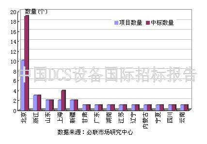 在招標(biāo)采購(gòu)地區(qū)方面,北京、浙江、山東、上海以及新疆在2009年我國(guó)DCS設(shè)備國(guó)際招標(biāo)市場(chǎng)中表現(xiàn)相對(duì)較為活躍。北京地區(qū)的公告數(shù)量達(dá)到10個(gè),中標(biāo)數(shù)量近20臺(tái),均位于首位。除以上五個(gè)地區(qū)外,其他地區(qū)項(xiàng)目數(shù)量以及中標(biāo)產(chǎn)品數(shù)量均為1臺(tái)(個(gè))。