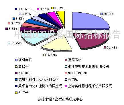 2009年有超過10家公司的產(chǎn)品參與了我國(guó)DCS設(shè)備國(guó)際招標(biāo)并成功中標(biāo),數(shù)據(jù)顯示,在09年度項(xiàng)目數(shù)量最多的是橫河電機(jī),占比總項(xiàng)目量的25.00%,其次是霍尼韋爾,占比21.43%,艾默生和浙江中控技術(shù)股份有限公司項(xiàng)目量占比相同,均為總項(xiàng)目量的14.29%。這四大廠商占據(jù)了市場(chǎng)近80%的份額。