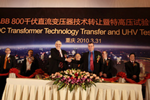 重慶,2010年3月31日——全球領(lǐng)先的電力和自動化技術(shù)集團(tuán)ABB,今天在此簽署協(xié)議,將800千伏高壓直流變壓器技術(shù)轉(zhuǎn)讓給在華企業(yè)——重慶ABB變壓器有限公司。同時,ABB舉行了重慶特高壓試驗中心的落成典禮。