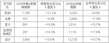 2006年全年銷售額強(qiáng)勁上揚(yáng)17.6%,有機(jī)增長再創(chuàng)歷史新高10.7%