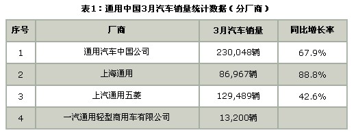 1、通用中國(guó)3月汽車銷量達(dá)230,048輛 同比增長(zhǎng)67.9%
