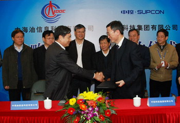 簽約儀式由施一明主持。首先,孫優(yōu)賢向嘉賓介紹了中控集團發(fā)展歷程,贊譽海油信科是一家年輕有為的企業(yè),預祝中控集團與海油信科合作成功。接著,李凡榮介紹了中國海洋石油總公司的概況和未來發(fā)展方向。他說,放眼自動化領域,作為一家中國民營企業(yè),中控出現(xiàn)在世界巨頭企業(yè)之列是我們意外的發(fā)現(xiàn),我們?yōu)橹袊苡兄锌剡@樣優(yōu)秀的企業(yè)感到驕傲;中海油非常高興能與中控合作,相信在雙方的共同努力下,此次合作定能結出豐碩果實。褚健向來賓們介紹了浙江大學的概況,相信中控依靠浙大強大的科研后盾,將會研發(fā)出更多的高端產品,服務于中海油等高端市場;希望雙方不僅在此次合作中,更在中海油未來發(fā)展的領域中能有更多的合作。