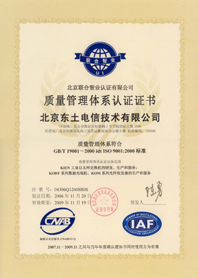 導(dǎo)語:東土上下員工一起齊心經(jīng)過三年的努力,在2006年11月20日獲得了質(zhì)量管理體系認(rèn)證證書