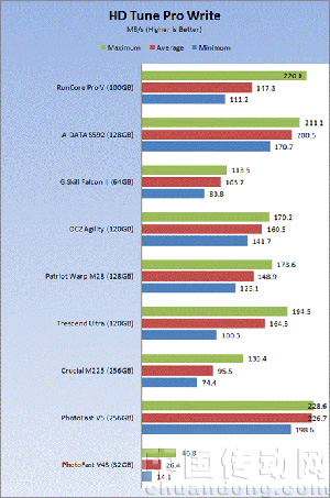 眾所周知,源科Pro V系列產(chǎn)品速度足以滿足消費者的需要,但在許多情況下受到SATA II甚至是處理器速度的限制。該款產(chǎn)品在4K書寫測試的表現(xiàn)是我們測試過的迄今為止最高的,非常驚人。可以說地球上的每個SSD愛好者都希望得到這款RunCore固態(tài)硬盤