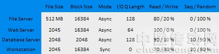 這些測試使用了不同的設(shè)置來模擬在服務(wù)器上可能出現(xiàn)的各種基礎(chǔ)的多用戶操作。在某些應(yīng)用程序中經(jīng)常會遇到讀寫數(shù)據(jù)比例的差異,隨機(jī)與持續(xù)讀取數(shù)據(jù)比例的差異,比如,網(wǎng)頁服務(wù)器幾乎接近100%的讀取數(shù)據(jù),而進(jìn)行數(shù)據(jù)庫寫入數(shù)據(jù)卻只占極小部分。