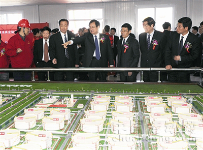 5月11日上午,中國(guó)石化天津原油商業(yè)儲(chǔ)備基地開工,有關(guān)領(lǐng)導(dǎo)正在觀看商儲(chǔ)基地模型。