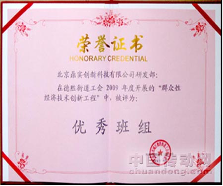 導(dǎo)語:鼎實創(chuàng)新榮獲2009年度“群眾性經(jīng)濟(jì)技術(shù)創(chuàng)新工程”優(yōu)秀班組稱號