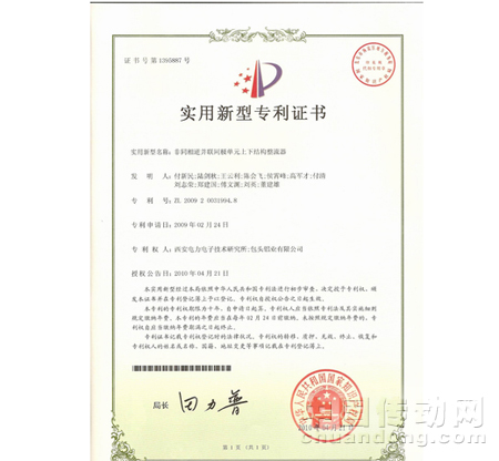 我所與包頭鋁業(yè)有限公司共同研制的“非同相逆并聯(lián)同極單元上下結(jié)構(gòu)整流器”近日通過國家專利局的審批,取得國家實用新型專利證書(專利號:ZL 2009 2 0031994.8)。