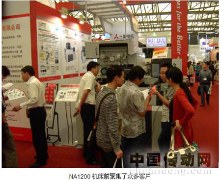 在此次展會中,三菱電機(jī)展出了包括最新的NA1200、EA8AM、EA12AM在內(nèi)的5臺機(jī)床。高性能的機(jī)床,結(jié)合豐富的加工演示內(nèi)容,吸引了不少觀眾的駐足觀看。在代理商及銷售人員的熱情介紹下,觀眾紛紛表示,三菱電機(jī)新推出的機(jī)型,無論是在外觀還是性能方面,都有了很大的提高,為客戶的高精度、高速度加工需求提供保障。