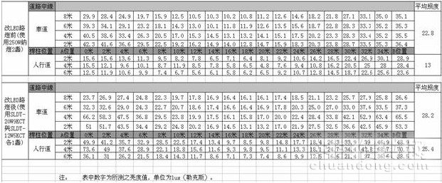 實際量測安裝前后地面實際照度的數(shù)值可見下表,安裝前后機動車道平均照度提升(28.2-22.8)/22.8=23.7%,非機動車道照度提升(25.4-13)/13=95.4%,單桿功耗降低(640-320)/640=50%。不僅照度有顯著的提升,以換裝124盞250瓦鈉燈計算,每年節(jié)電超過6萬8千人民幣。
