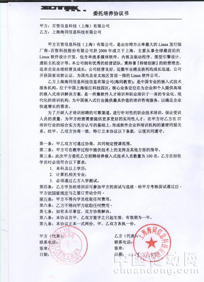 日前,上海海同嵌入式培訓(xùn)中心與百資信息科技(上海)有限公司簽約定向委托培養(yǎng)協(xié)議,海同嵌入式培訓(xùn)中心成為百資公司人才輸送基地。