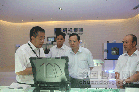 研祥集團董事局主席陳志列首先在展廳向各位領導介紹了研祥發(fā)展歷程、所獲得的各項榮譽及產品研發(fā)情況。