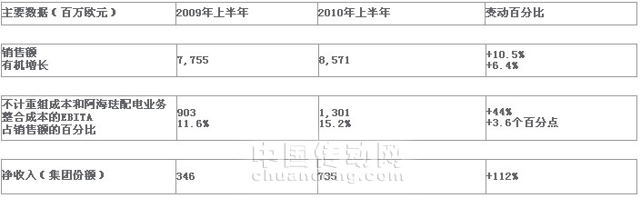 2010年第二季度銷售額實現(xiàn)兩位數(shù)增長,所有業(yè)務(wù)與區(qū)域均恢復(fù)增長,銷售總額達(dá)到46.61億歐元,基于當(dāng)前結(jié)構(gòu)和匯率基礎(chǔ),增長率為18.5%,如剔除結(jié)構(gòu)和匯率的影響,增長率為10.2%。