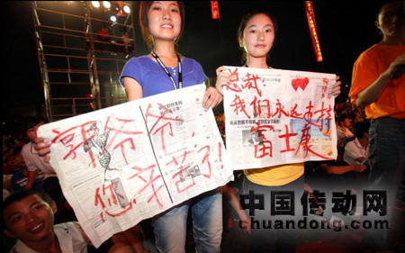 這一系列活動(dòng),讓人們心安的同時(shí)也在考慮,這些默默做就可以了,員工是自己的,員工安頓好對(duì)于公司來說也是一種進(jìn)步發(fā)展??墒瞧谶@個(gè)時(shí)候,富士康要搞什么誓師大會(huì),并且寫著“愛我愛你”的郭臺(tái)銘的巨幅像也高調(diào)的在這次大會(huì)上出現(xiàn),還有裝扮成西游記中人物的帶隊(duì)搞什么街頭游行,并舉著“家在富士康,每天都陽光”的橫幅。這一場(chǎng)高調(diào)的誓師活動(dòng)不禁讓人發(fā)問:這樣的活動(dòng)究竟是富士康員工真情流露,還是富士康的又一場(chǎng)公關(guān)活動(dòng),又或者僅僅是一場(chǎng)作秀,而眾多的富士康員工就這樣再一次成為了宣傳富士康的工具,而那些已經(jīng)死去的人,也僅僅只是這場(chǎng)作秀活動(dòng)中的插曲、一個(gè)小高潮……
