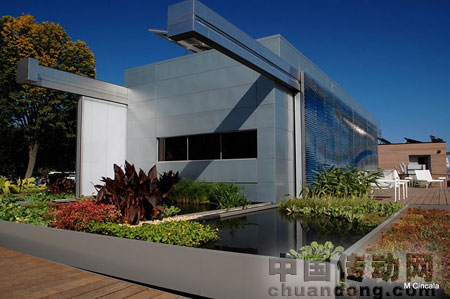 Wheeler解釋說(shuō):“流明屋擁有自己的氣象站,帶有一個(gè)“被動(dòng)/主動(dòng)”環(huán)境控制系統(tǒng),可以減少能耗并使效率最大化。簡(jiǎn)單地說(shuō),氣象站與控制系統(tǒng)進(jìn)行通訊,然后控制系統(tǒng)再通知Thomson和科爾摩根運(yùn)動(dòng)系統(tǒng)來(lái)打開或關(guān)閉房屋。如果房屋需要隔熱,那么隔熱屏蔽就會(huì)閉合;如果房屋需要遮陽(yáng),那么遮陽(yáng)屏蔽就會(huì)閉合;而如果房屋需要隱秘時(shí),遮蔽屏蔽就會(huì)閉合,同時(shí)不會(huì)影響自然通風(fēng)?!?/p>