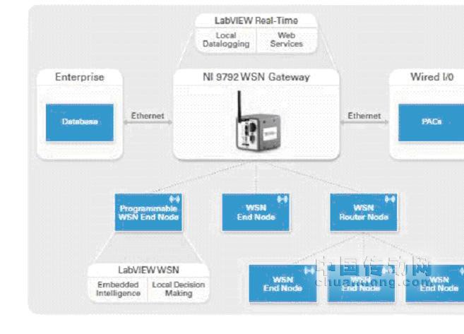 NI平臺可以幫助你進(jìn)一步定制和增強(qiáng)WSN架構(gòu)。因?yàn)橐蕴W(wǎng)連接的靈活性,你可以為你的WSN系統(tǒng)添加其它的設(shè)備和功能,無論是像數(shù)據(jù)庫和服務(wù)器這樣的企業(yè)級設(shè)備,還是有線I/O接口、控制系統(tǒng)和第三方WSN產(chǎn)品。LabVIEW實(shí)時(shí)模塊允許網(wǎng)關(guān)進(jìn)行嵌入式數(shù)據(jù)記錄和開放式通信,同時(shí),LabVIEWWSN模塊允許節(jié)點(diǎn)定制和節(jié)點(diǎn)層的本地決策。