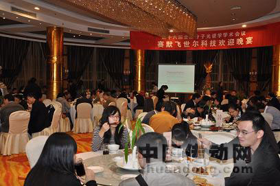 賽黙飛世爾科技作為服務(wù)科學(xué)的領(lǐng)導(dǎo)者,成為此次會議的首要贊助商而大放異彩。在11月1日賽黙飛世爾科技的歡迎晚宴上,科學(xué)儀器市場部經(jīng)理王勇為博士致辭,王勇為博士說,賽黙飛世爾科技科學(xué)儀器旗下分子光譜部前身是著名的尼高力公司,主要提供紅外、拉曼、近紅外等產(chǎn)品。除了大家熟悉的常規(guī)分析設(shè)備外,此次還為大家?guī)砹耸殖质焦庾V儀。這是今年初剛加入Thermo大家庭的新成員。