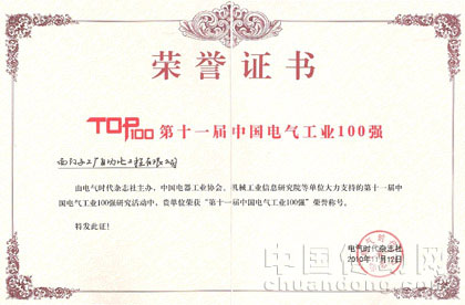 第十一屆中國電氣工業(yè)100強頒獎典禮于2010年11月12日舉行,SFAE 躍居中國電氣工業(yè)百強第50位。