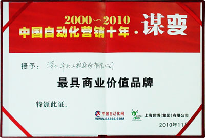 導語:中國自動化營銷十年(2000~2010)評選頒獎典禮在上海永達國際大廈舉行,華北工控榮獲最具商業(yè)價值品牌獎。