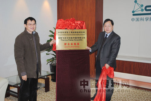 2010年12 月15日 ,中國上海 ——中國科學(xué)院上海硅酸鹽研究所與全球科學(xué)服務(wù)領(lǐng)域的領(lǐng)導(dǎo)者賽默飛世爾科技(紐約證交所代碼: TMO )宣布正式成立合作實(shí)驗(yàn)室。上海硅酸鹽研究所分析測試中心主任卓尚軍先生和賽默飛世爾科技科學(xué)儀器部商務(wù)運(yùn)營總監(jiān)裴立文先生共同為合作實(shí)驗(yàn)室揭牌,掀開雙方在材料分析檢測領(lǐng)域合作的新篇章。