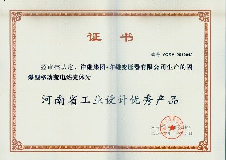 許繼隔爆型移動變電站殼體被評為“河南省工業(yè)設(shè)計優(yōu)秀產(chǎn)品”