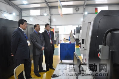 廣數(shù)董事長(zhǎng)何敏佳(中)參觀大賽賽區(qū)