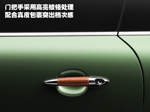 作為一款售價(jià)不低的全球知名精品小型車,MINI自然會擁有符合身價(jià)的優(yōu)良品質(zhì)。車型門把手采用高亮度鍍鉻處理。在與經(jīng)常皮膚接觸的部分,車型用高品質(zhì)真皮材質(zhì)包裹,讓您能在接觸它的第一時(shí)間,就能體現(xiàn)出MINI品牌帶給你的不俗水準(zhǔn)。