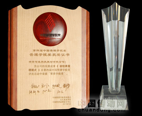 2011年1月8日,由《北大商業(yè)評(píng)論》雜志社主辦的 “中國(guó)管理學(xué)院獎(jiǎng)” 評(píng)選落下帷幕,研祥的非經(jīng)典管理模式廣受推崇,一舉摘取“第四屆中國(guó)管理學(xué)院獎(jiǎng)”?!爸袊?guó)管理學(xué)院獎(jiǎng)”旨在尋找中國(guó)最優(yōu)管理實(shí)踐,打造本土最佳學(xué)習(xí)標(biāo)桿,探索公司基業(yè)長(zhǎng)青之道,總結(jié)企業(yè)創(chuàng)新管理思想。它是中國(guó)管理學(xué)界對(duì)中國(guó)企業(yè)管理實(shí)踐的權(quán)威審視,是對(duì)中國(guó)企業(yè)管理創(chuàng)新的最高嘉獎(jiǎng),對(duì)中國(guó)企業(yè)管理創(chuàng)新和變革帶來(lái)方向性影響。