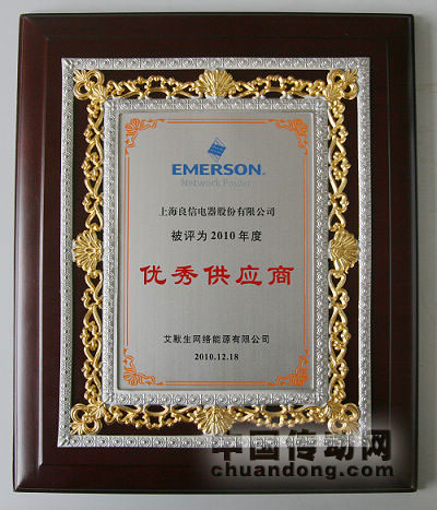 2010年12月18日,良信電器被授予艾默生網(wǎng)絡能源2010年度優(yōu)秀供應商稱號。