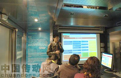 交流的平臺(tái)——客戶西門子工程師進(jìn)行交流[/ALIGN] 西門子過程自動(dòng)化巡展車長(zhǎng)17米,寬7.5米,高4米,車身為明快的藍(lán)色 。車廂內(nèi)安裝了完整的SIMATIC PCS 7系統(tǒng),包括4臺(tái)控制器站,有冗余型和故障安全型CPU,6臺(tái)工程師/操作員站和3臺(tái)服務(wù)器的系統(tǒng)結(jié)構(gòu)。整個(gè)系統(tǒng)集成了PROFIBUS DP/PA現(xiàn)場(chǎng)總線、過程安全、智能現(xiàn)場(chǎng)設(shè)備等當(dāng)今最先進(jìn)的技術(shù)。同時(shí)也集合了西門子過程自動(dòng)化產(chǎn)品與系統(tǒng)在不同過程工業(yè)中的經(jīng)驗(yàn), 如石油、化工、電力、冶金、制藥、水泥、玻璃、環(huán)保等行業(yè)。 西門子過程自動(dòng)化巡展車作為一個(gè)流動(dòng)的演示平臺(tái),也是個(gè)流動(dòng)的教室,帶著我們的設(shè)備,和工程技術(shù)人員去走訪最終用戶、設(shè)計(jì)院、系統(tǒng)集成商,并將與他們?cè)诩夹g(shù)方面以及工程應(yīng)用方面展開積極的交流。西門子過程自動(dòng)化巡展車將繼續(xù)在全國(guó)巡回展出,將最前沿的自動(dòng)化系統(tǒng)和最先進(jìn)的自動(dòng)化技術(shù)送到最終用戶、系統(tǒng)集中商和潛在客戶面前,讓他們同西門子過程自動(dòng)化的專家和技術(shù)人員進(jìn)行最直接的互動(dòng)交流。通過與客戶的交流,我們使客戶認(rèn)識(shí)、了解并且接受了我們的產(chǎn)品,同時(shí)我們也了解了客戶的實(shí)際需求以及對(duì)我們產(chǎn)品提出的建議,為我們今后的發(fā)展提出了更加明確的方向,使我們的產(chǎn)品能夠做到更好。