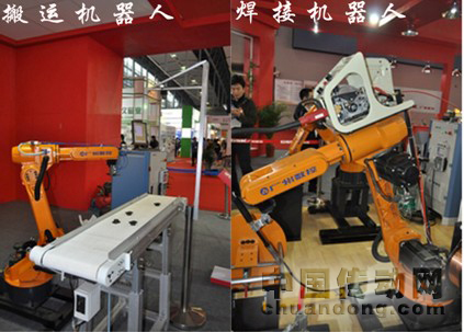 機(jī)器人展區(qū)展示了三臺(tái)廣州數(shù)控自主研發(fā)的RB08型工業(yè)機(jī)器人,其中1臺(tái)為帶自制減速器工裝的焊接機(jī)器人、1臺(tái)為帶視覺裝置的搬運(yùn)機(jī)器人和1臺(tái)為帶涂膠系統(tǒng)的涂膠機(jī)器人。作為國家科技部863計(jì)劃項(xiàng)目之一,廣州數(shù)控成立了機(jī)器人工程總部,專業(yè)的工程化隊(duì)伍、先進(jìn)的試驗(yàn)檢測設(shè)備儀器和手段,為RB系列工業(yè)機(jī)器人的可靠性驗(yàn)證提供了有效保證。通過多年來不斷的技術(shù)積累與探索,RB系列工業(yè)機(jī)器人核心功能部件伺服驅(qū)動(dòng)、伺服電機(jī)、運(yùn)動(dòng)控制系統(tǒng)均已初步實(shí)現(xiàn)產(chǎn)業(yè)化,具有成熟穩(wěn)定的生產(chǎn)能力。這使得我們?cè)陂_發(fā)重載搬運(yùn)機(jī)器人成本控制上具有得天獨(dú)厚的優(yōu)勢,利于實(shí)現(xiàn)搬運(yùn)機(jī)器人的產(chǎn)業(yè)化。GSK將根據(jù)用戶的需求設(shè)計(jì)完整的機(jī)器人應(yīng)用方案,向工廠制造業(yè),特別是汽車產(chǎn)業(yè)及機(jī)械制造產(chǎn)業(yè)提供專業(yè)的高品質(zhì)的機(jī)器人。