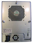 華北工控DS-500機(jī)箱后部的左下角有一個(gè)電源接口。在其右側(cè),有一個(gè)40mm的小電源風(fēng)扇。機(jī)箱后部有三個(gè)翼形螺釘,可以方便拆卸后面板更換風(fēng)扇。在右下角,有一個(gè)eSATA的接口,內(nèi)置的Sil-3726 SATA接口底板允許5個(gè)硬盤共用一根eSATA數(shù)據(jù)連接線。當(dāng)機(jī)器運(yùn)行的時(shí)候,綠色的LED燈就會(huì)發(fā)光。還有一個(gè)復(fù)位鍵。92mm硬盤風(fēng)扇將熱風(fēng)從機(jī)箱后部散出,同時(shí)通過(guò)前面硬盤盒的縫隙中吸進(jìn)冷空氣。