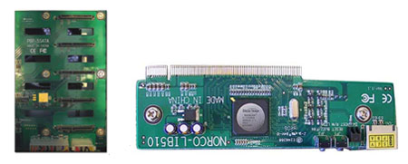 NORCO - 4618 SATA適配器是DS-500的附屬配件。它利用Silicon公司的SiI 3124-2CB364控制芯片,支持PCI-X。裝有Mac OS X 10.4.x 操作系統(tǒng)的PowerMac G4或者G5 能利用NORCO-4618上面的4個(gè)eSATA端口連接外圍設(shè)備或者SATA規(guī)范的設(shè)備。有很多的SATA設(shè)備可以通過(guò)NORCO-4618 SATA適配器開(kāi)展工作。當(dāng)NORCO-4618轉(zhuǎn)接卡插在一個(gè)PCI-X的插槽上,DS-500就會(huì)通過(guò)SATA數(shù)據(jù)線連接到這臺(tái)電腦。蘋果機(jī)的用戶可以利用磁盤管理工具來(lái)設(shè)定硬盤和NORCO-4618/DS-500的連接。