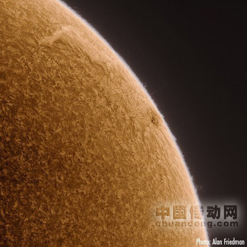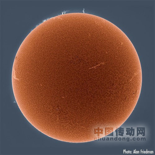這些太陽(yáng)的照片來自于天文攝影者Alan Friedman在其位于紐約 Buffalo區(qū)的后院用Point Grey火線相機(jī)拍得。望遠(yuǎn)鏡配備了氫阿爾發(fā)窄波段濾鏡。太陽(yáng)的主要組成物——?dú)?,在深紅色光線下反射強(qiáng)烈,使得從日輪中延伸出來的太陽(yáng)外部層面和毛狀光絲呈現(xiàn)出高深度的細(xì)節(jié)。不同于只是抓拍一張圖片,F(xiàn)riedman、拍攝了90秒的視頻,然后從中選出了幾組最細(xì)膩的圖片。在這900張捕捉到的圖片中,F(xiàn)riedman只留下了其中的200張。