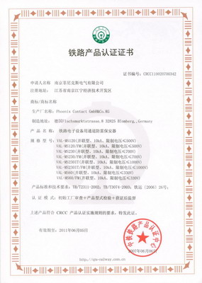菲尼克斯電氣中國(guó)公司獲得CRCC 鐵路產(chǎn)品認(rèn)證證書