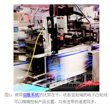 為了理解垂直紙板包裝機(jī)上的伺服控制運(yùn)動(dòng)所帶來(lái)的好處,我們來(lái)看看Ultra Packaging公司的Veronica紙板包裝機(jī)的功能。伺服馬達(dá)用來(lái)控制機(jī)器的關(guān)鍵部位,提供紙板箱、產(chǎn)品、紙板合頁(yè)褶縫與粘接的精確同步。平的空白卡紙直立起來(lái)形成紙板箱,然后被放到穿過(guò)機(jī)器的傳送帶上。在這個(gè)過(guò)程中,紙板箱底部封閉,產(chǎn)品從紙板箱頂部的開(kāi)口裝進(jìn)去。然后紙板箱上部封閉、膠合。整個(gè)過(guò)程必須由伺服系統(tǒng)緊密同步,以避免機(jī)器頻繁卡住紙板箱。