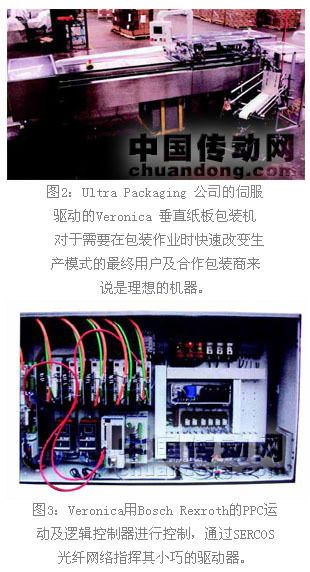 在其最新的機(jī)器設(shè)計(jì)中,Ultra Packaging公司采用了全伺服GEN III包裝自動(dòng)化方案,成功地將其垂直紙板包裝機(jī)上面的機(jī)械控制運(yùn)動(dòng)轉(zhuǎn)換成了來(lái)自于Bosch Rexroth公司(www.boschrexroth-us.com)電子驅(qū)動(dòng)及控制技術(shù)小組的伺服馬達(dá)及驅(qū)動(dòng)系統(tǒng)。