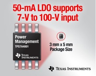 TPS7A4001 50 mA LDO 既具有業(yè)界最寬泛的輸入電壓容差,輸入電壓范圍在 7 V 至 100 V 之間,又可為 50 V 瞬態(tài)事件實(shí)現(xiàn)不足 500 納秒的快速建立時(shí)間。該器件采用微型 8 引腳熱增強(qiáng)型 3 毫米 x 5 毫米 MSOP 封裝,靜態(tài)電流低至 25 uA,可確保噪聲環(huán)境下的高輸出精度。如欲訂購(gòu)樣片與評(píng)估板,敬請(qǐng)?jiān)L問(wèn):www.ti.com.cn/tps7a4001-pr。
