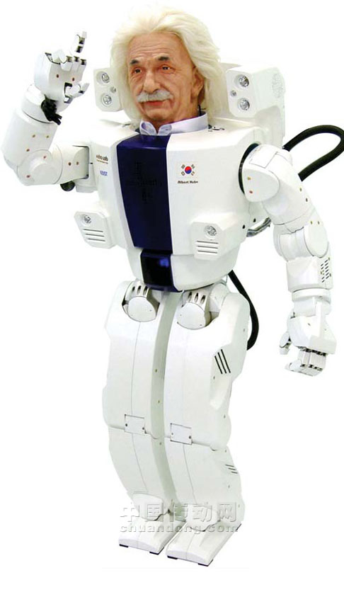 漢森的最知名智能機(jī)器人之一是愛因斯坦的頭部,這里放在一個(gè)雙足機(jī)器人身體上進(jìn)行展示,身體與頭部不是很契合。