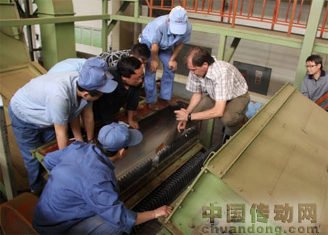 愛德森先生一行到公司后立刻投入到工作狀態(tài)中。在車間里,愛德森先生認(rèn)真聽取了車間操作人員對(duì)設(shè)備運(yùn)行中存在的一些疑問和問題,之后,便開始在車間里認(rèn)真巡查,仔細(xì)研究每一個(gè)可能出現(xiàn)問題的環(huán)節(jié)。針對(duì)擺把臺(tái)間或出現(xiàn)堵料和解把率不高的問題,愛德森提出要控制擺把臺(tái)煙葉流量,做到布料均勻,無煙葉重疊或倒把現(xiàn)象。在他的指導(dǎo)下,設(shè)備維修人員還對(duì)解把刀的高度做了調(diào)整,在原來的高度基礎(chǔ)上適當(dāng)?shù)倪M(jìn)行了升高。經(jīng)現(xiàn)場(chǎng)試驗(yàn),收到了比較滿意的效果。