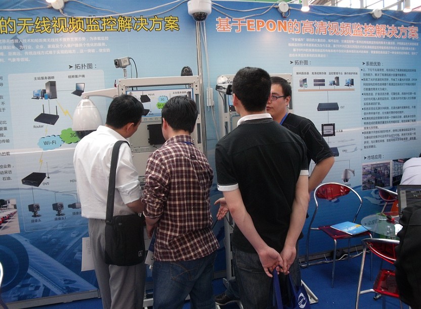 現(xiàn)場客戶對展示的系統(tǒng)方案尤感興趣,宏電工程師介紹說:由于“平安城市”項目的大量啟動,城市監(jiān)控、交通監(jiān)控等一系列遠程視頻監(jiān)控組網(wǎng)需求大量出現(xiàn),IP視頻監(jiān)控尤其是高清視頻監(jiān)控技術將逐漸成為當今主流,基于EPON無源光網(wǎng)絡技術的高清視頻監(jiān)控傳輸系統(tǒng)亦將成為業(yè)內(nèi)最佳解決方案,不僅僅只是體現(xiàn)在技術的革新,更重要的是創(chuàng)造了一種全新的應用模式、提供了適應未來監(jiān)控系統(tǒng)的發(fā)展途徑。