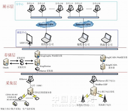 北京熱力集團(tuán)將新建立一個(gè)調(diào)度中心,一方面實(shí)時(shí)獲取各現(xiàn)場換熱站的數(shù)據(jù),另一方面能將這些數(shù)據(jù)進(jìn)行歷史存儲(chǔ),用于自身的展示分析,同時(shí)該系統(tǒng)完全開放,能方便其他系統(tǒng)獲取歷史數(shù)據(jù),用于熱能分析和后續(xù)決策,如提供接口為Oracel數(shù)據(jù)庫,LED大屏幕提供數(shù)據(jù),還可以從其他系統(tǒng)獲取數(shù)據(jù);可以支持GIS系統(tǒng)。信息中心的建立,將有效解決多個(gè)區(qū)域換熱站監(jiān)測的遠(yuǎn)程管理和維護(hù)難的問題,同時(shí)通過對多個(gè)區(qū)域的歷史數(shù)據(jù)及報(bào)警事件系統(tǒng)分析比對,能快速掌握及比較各個(gè)換熱站的情況,為能效的管理改善提供決策依據(jù)。