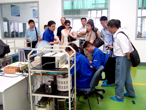 中午,全體參會代表齊聚世紀金源宴會廳,在悠揚、典雅的傳統(tǒng)民樂聲中享用午宴。下午,部分參會代表驅車前往利德華福陽坊生產基地參觀,參會代表分成兩組分別在工藝保障經理兼制造二部主任范小強和制造一部主任李云的解說下,仔細參觀變頻器生產制造流程,參會代表對利德華福整潔、現(xiàn)代化的廠房及完善的生產工藝流程給予了高度評價。至此,為期一天的“利德華福高壓變調速設備銷售1000套業(yè)績發(fā)布儀式”圓滿結束。