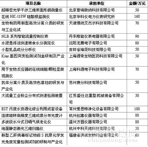 多家儀器儀表企業(yè)有幸獲得此無償資助基金,具體見下表:
